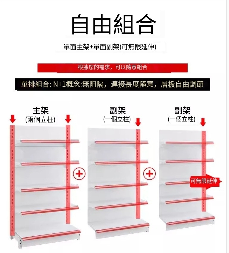 熱推加寬加厚加大加高超市貨架 層架 展示架 【雙面主架90*86*180五層白色】