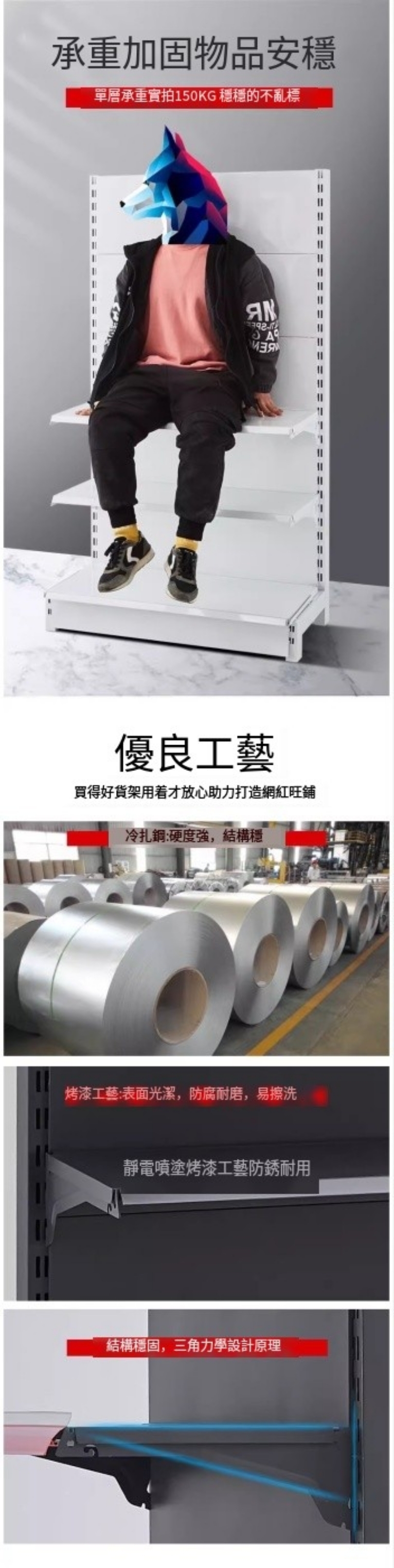 熱推加寬加厚加大加高超市貨架 層架 展示架 【單面主架90*46*225五層白色】