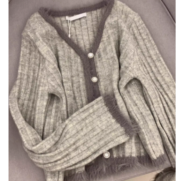 熱推女士秋冬毛邊長袖針織開衫(灰色均碼)