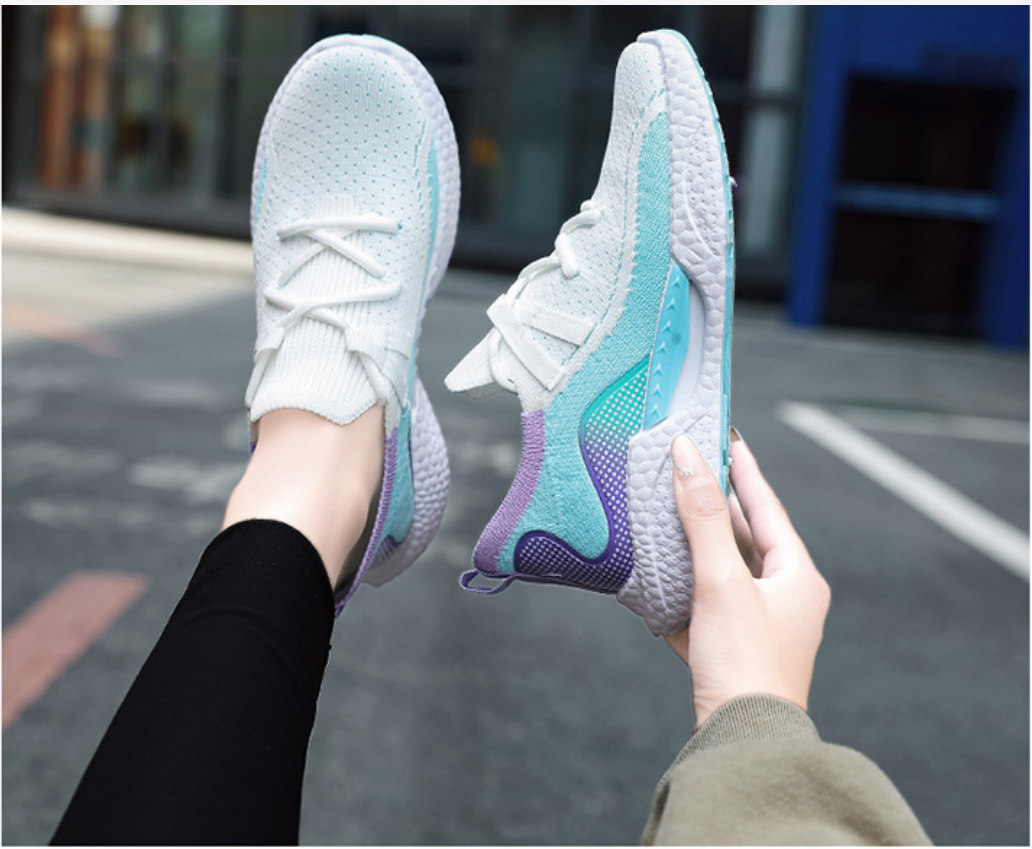 熱推女款舒適飛織透氣運動鞋(白桔)(尺碼:36-39碼)(下單後請聯絡客服確認發貨尺碼)