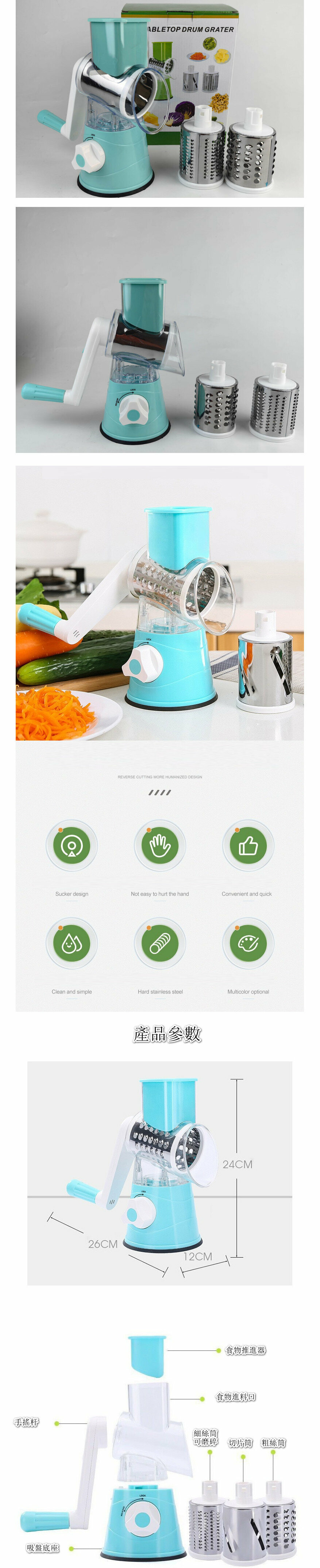 熱推家用蒜泥器 搗蒜器 切菜機 廚房切菜機 多功能滾筒切菜器【藍色】
