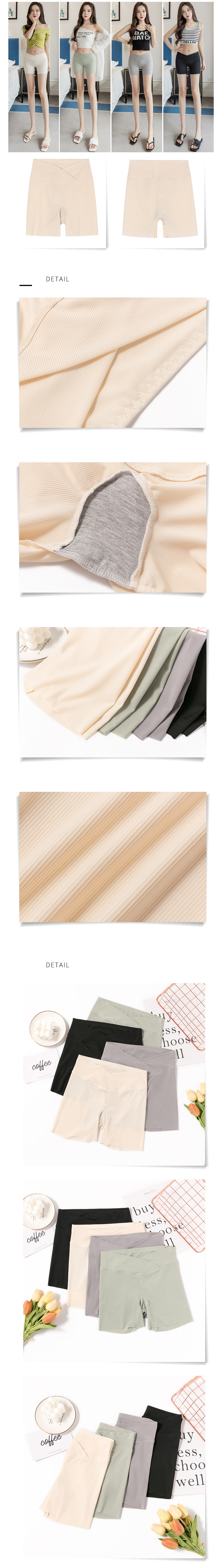 新款冰絲打底褲(交叉腰三分褲-綠色)均碼