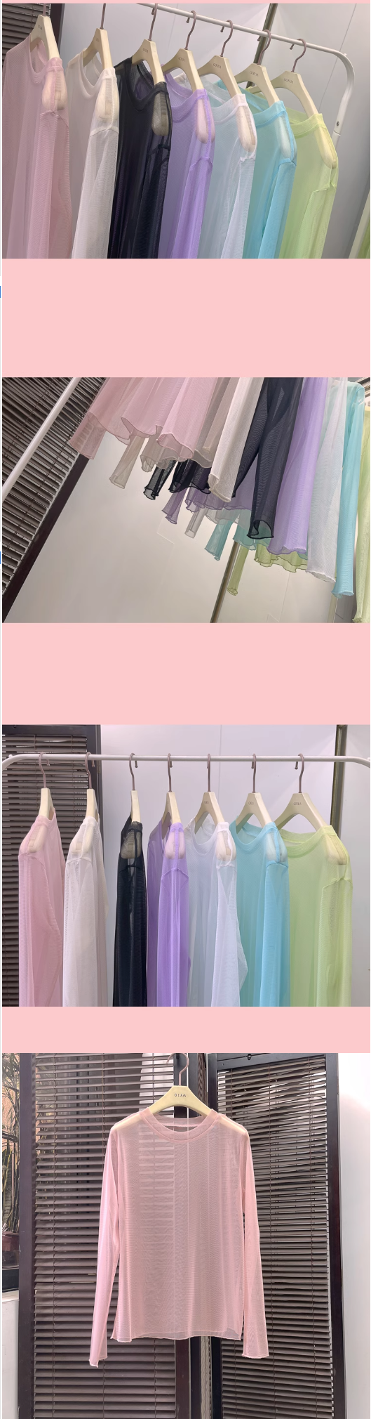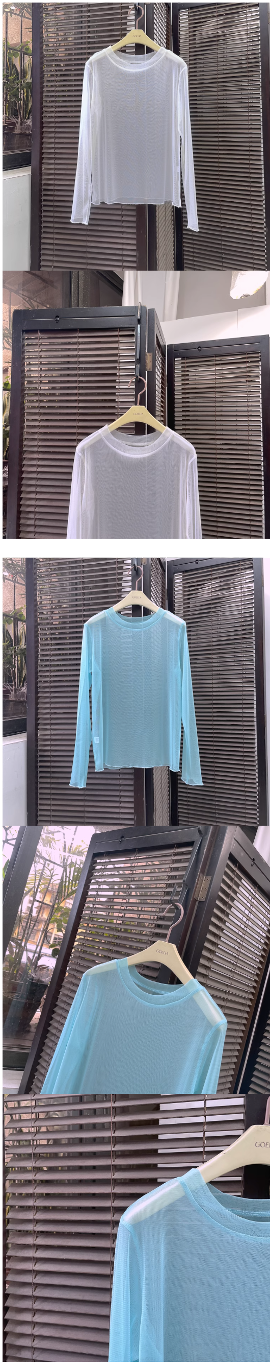 激抵冰絲長袖t恤防曬衣網紗打底衫(黑色)(均碼)】