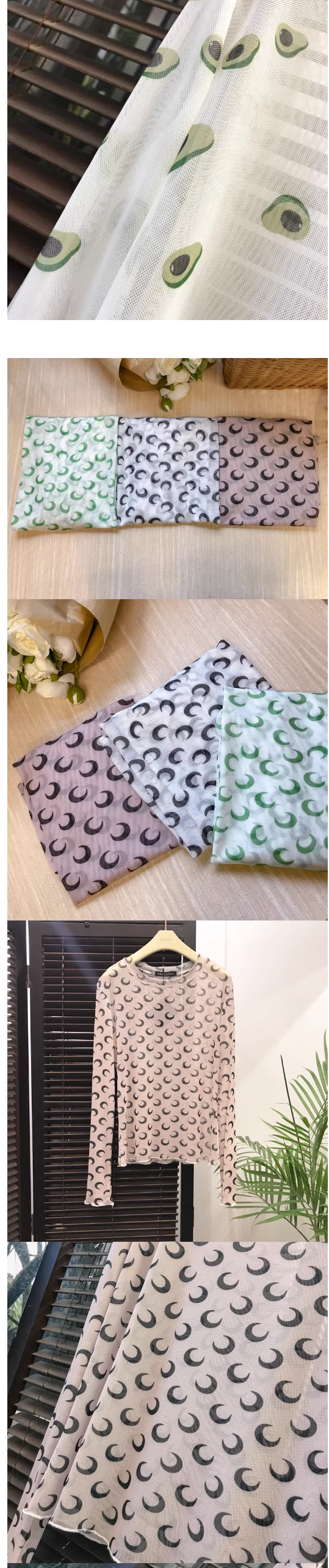 新款冰絲防曬長袖網紗t恤印花打底衫(黑色底白月亮)(均碼)