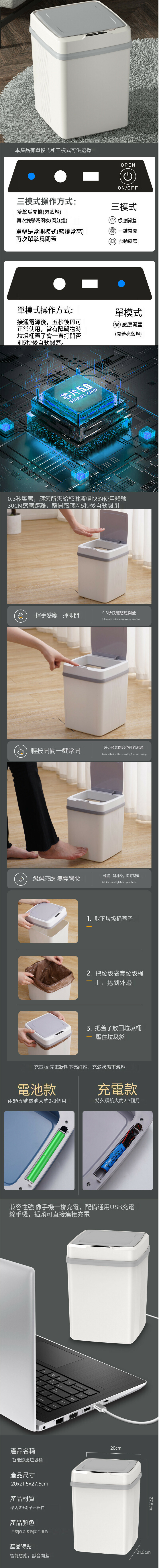 激抵智能全自動帶蓋垃圾桶(12L【三模式】白色優質【電池款】)