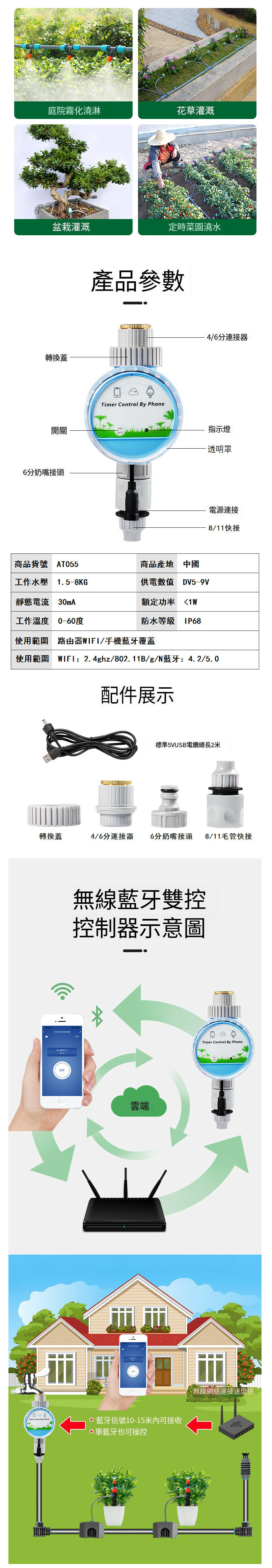 熱推智慧遠端控制自動滴灌定時灑水器【規格 WIFI&藍牙雙控控制器】