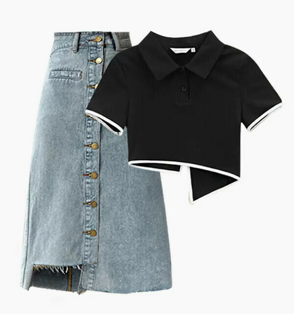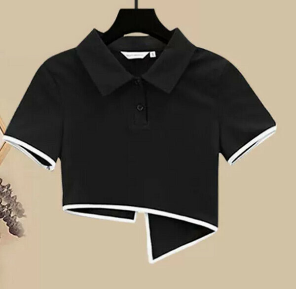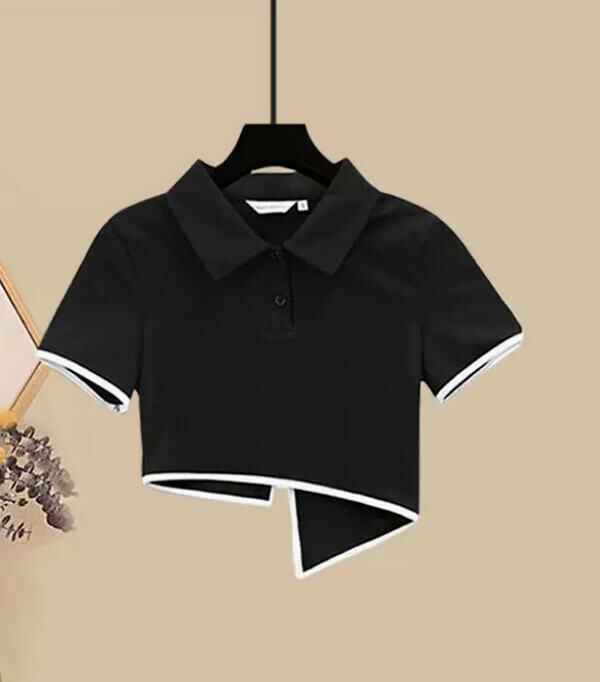 新款設計感不規則短款上衣#單件(黑色)(M-4XL碼) (下單後聯系客服確認尺碼)