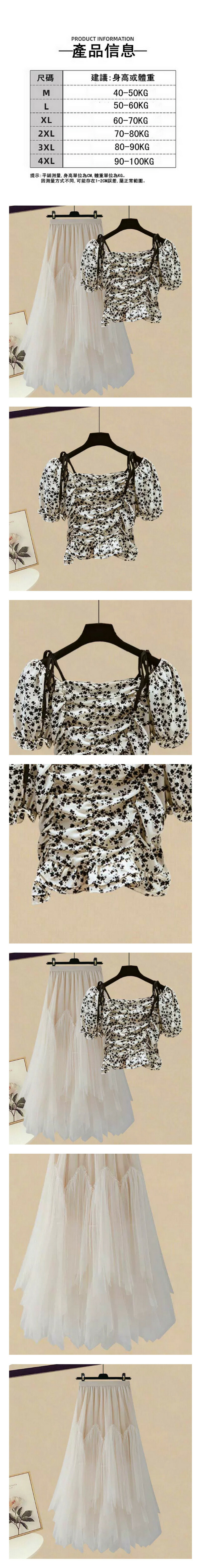 熱賣不規則網紗半身裙+雪紡衫(杏色)(M-4XL碼) (下單後聯系客服確認尺碼)