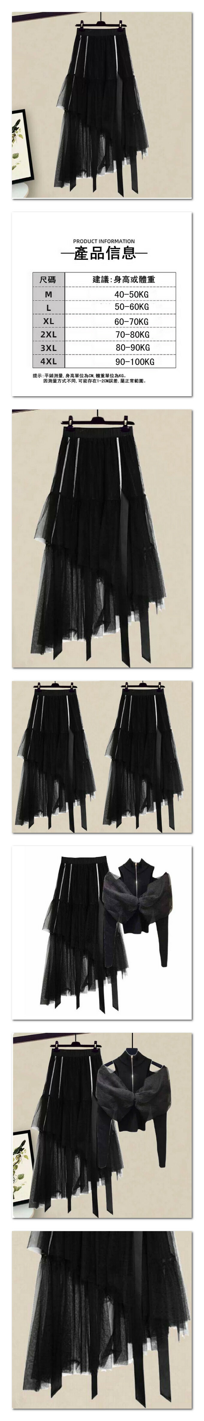 激抵不規則網紗半裙#單件(黑色)(M-4XL碼) (下單後聯系客服確認尺碼)