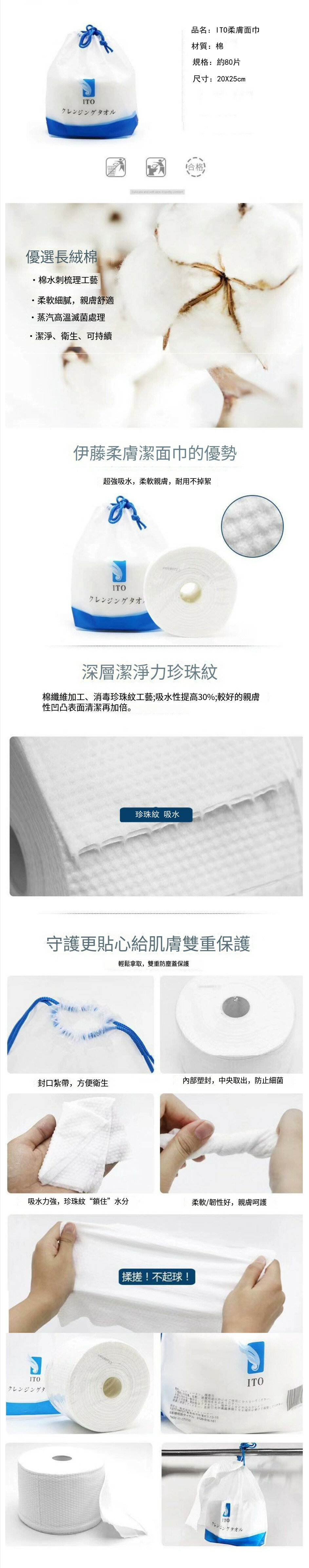 ITO/伊藤--美容洗臉巾一次性加厚潔面巾【便攜柔膚棉】抽桶裝潔面巾一包80抽