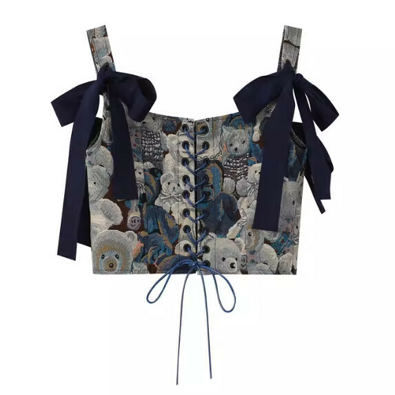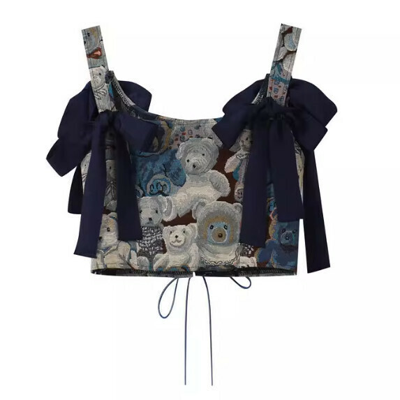 爆款提花蝴蝶結短款背心女夏(小熊款【S_M碼】(下單後聯繫客服確認發貨尺碼)
