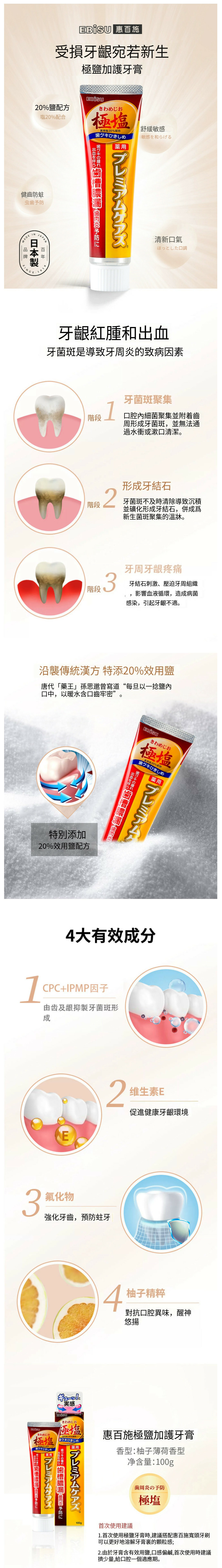 日本EBISU--極鹽牙膏清潔口腔防蛀防牙齦出血清新口氣【薄荷牙膏】100gx1支