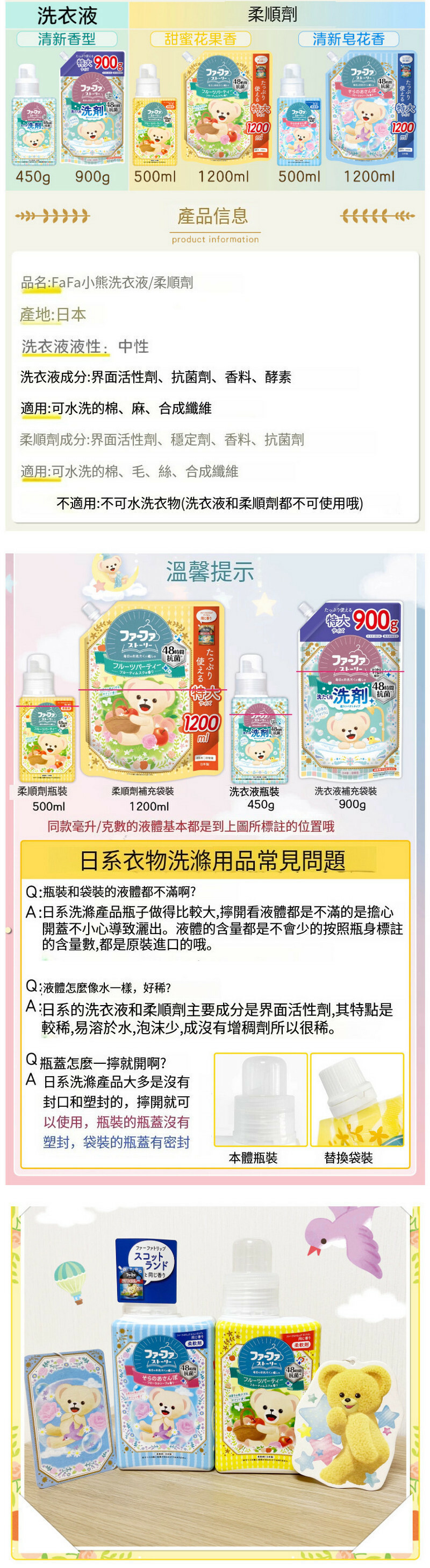 日本FAFA--小熊衣物持久留香防靜電【衣物柔順劑替換裝】甜蜜花果香1200mlx1瓶裝