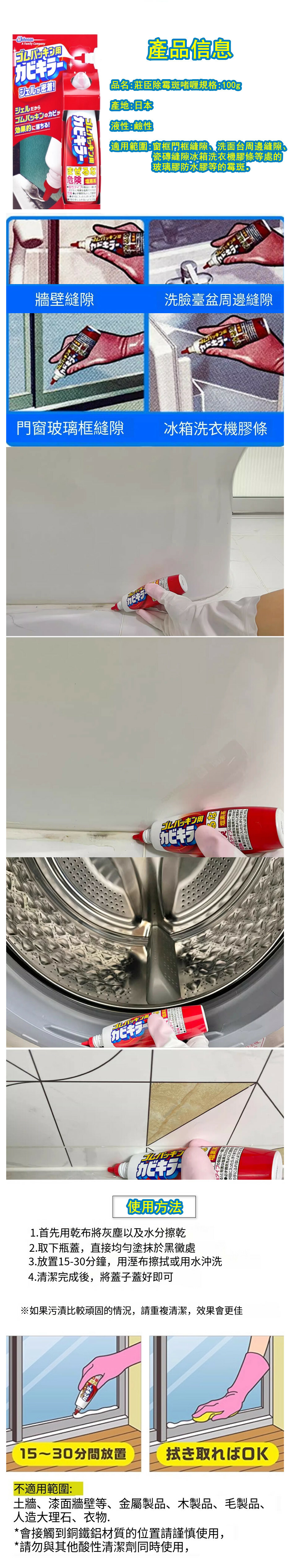 日本Johnson--洗衣機,縫隙黴斑除黴劑【防水膠黑斑清潔劑】100mlx1支