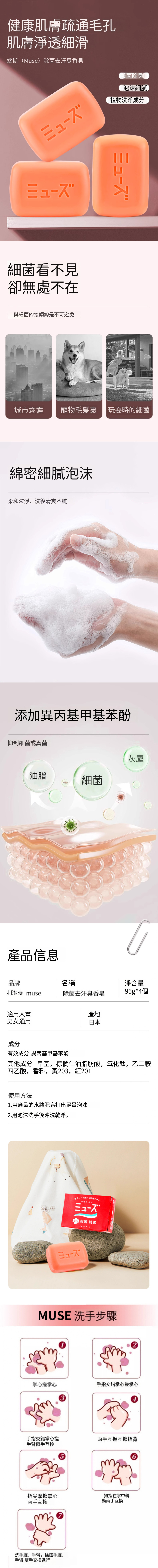 日本muse--香皂洗手沐浴除菌除蟎消毒去汗臭【止癢皂】4塊裝-95g/個