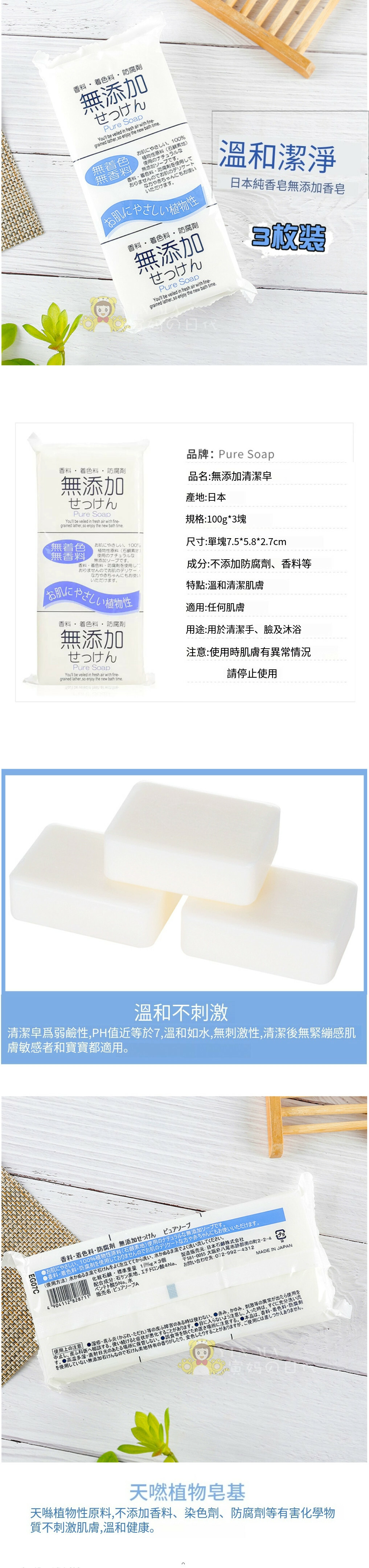 日本Pure Soap--無添加香皂去污沐浴皂男女【潔面皂】1包裝x3塊