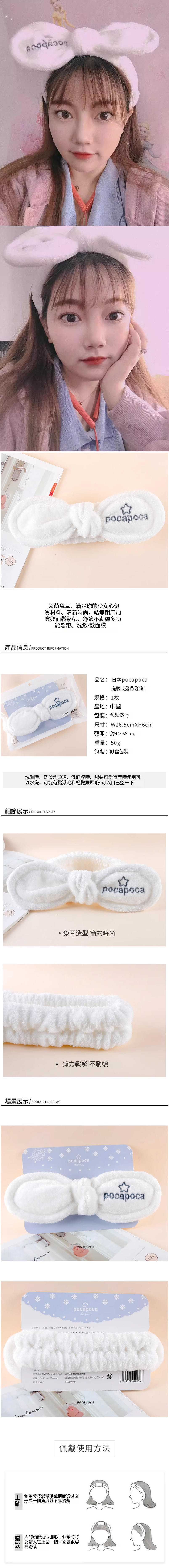 日本束髮帶--洗臉化妝發箍【運動防滑綁帶】X1條裝