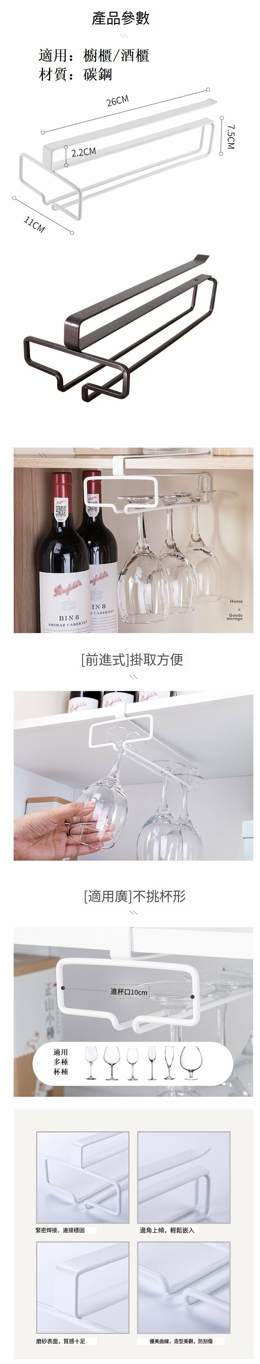 激抵日式櫥櫃紅酒杯架 免打孔倒掛高腳杯架 懸掛葡萄酒杯架 [咖啡色]