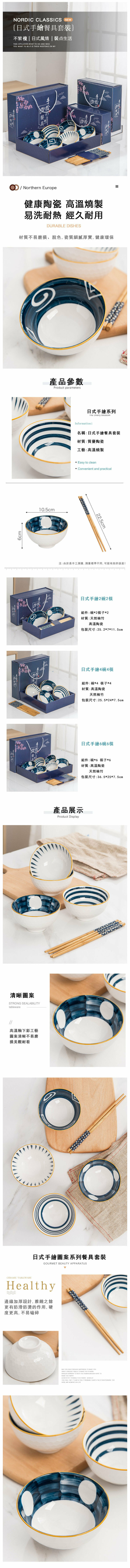激抵日式手繪碗筷陶瓷套裝(四碗四筷)