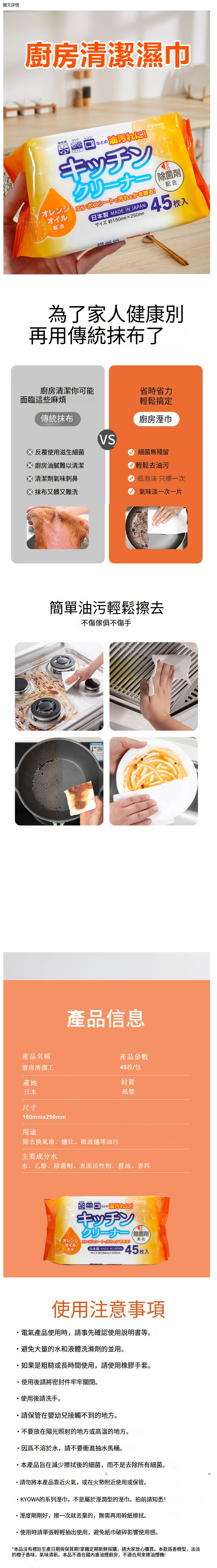 日本kyowa--廚房濕巾紙油煙機强力清潔抽取式【45抽】x1包