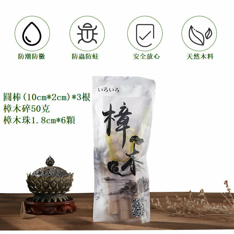 熱賣日式天然防蟲樟木套裝(一套)【圓棒(10cm*2cm)*3根+樟木碎50克+ 樟木珠1.8cm*6顆】
