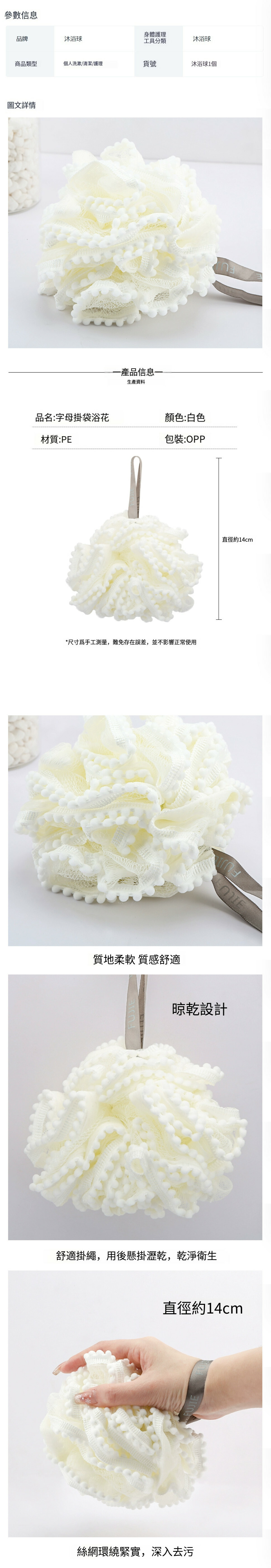 日系--素色起泡沐浴球浴花搓澡柔軟【洗澡球】x1個