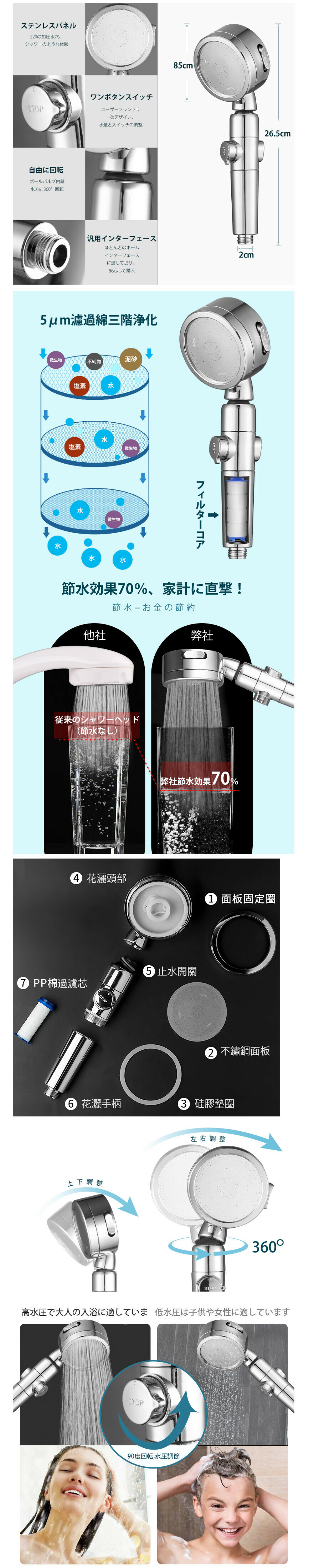 熱推日式搖頭三檔花灑(銀色電鍍款三件套-軟管免釘支架)