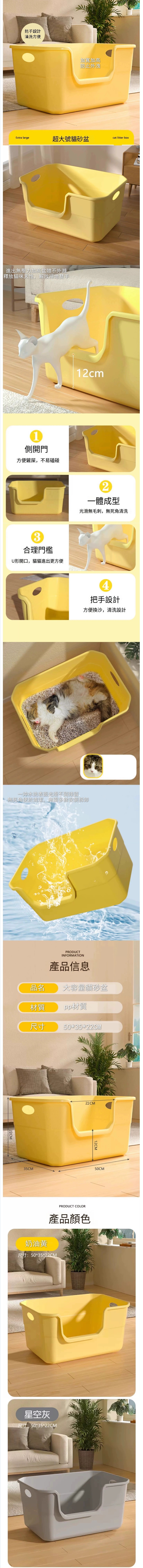 日式貓砂盆防外濺開放式貓廁所貓砂盆【升級加厚超大號】黃色60cm(貓砂鏟款式顔色隨機)