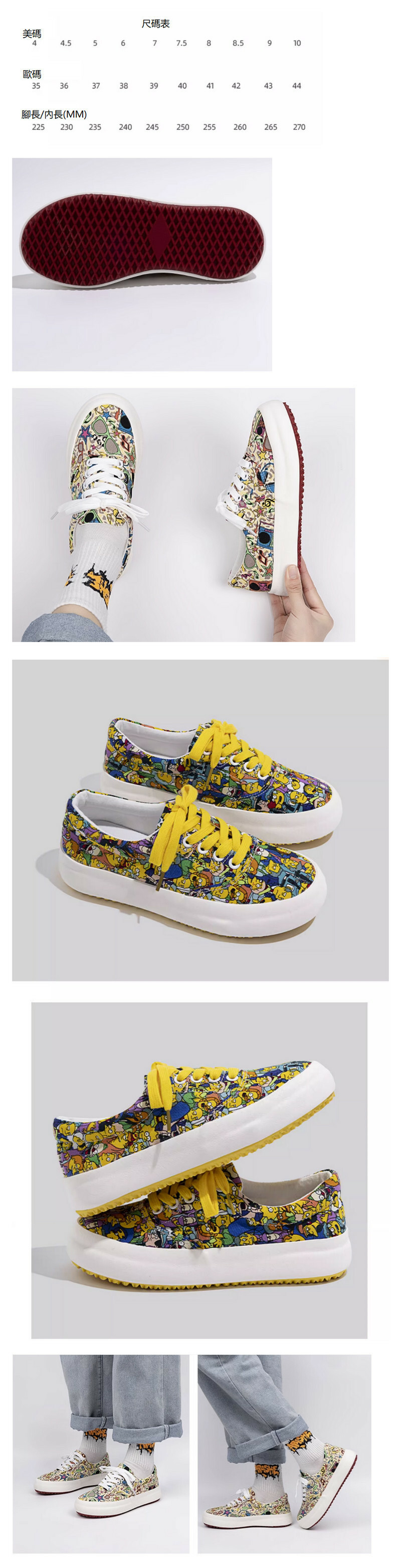 熱賣日系厚底塗鴉女帆布鞋(黃色)(尺碼:35-40)(下單後聯絡客服確認發貨尺碼)