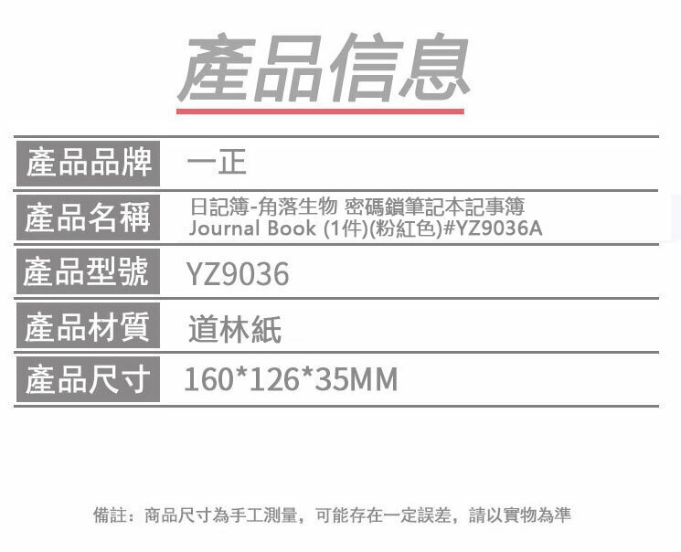 熱賣日記簿-角落生物 密碼鎖筆記本記事簿Journal Book (1件)(粉紅色)