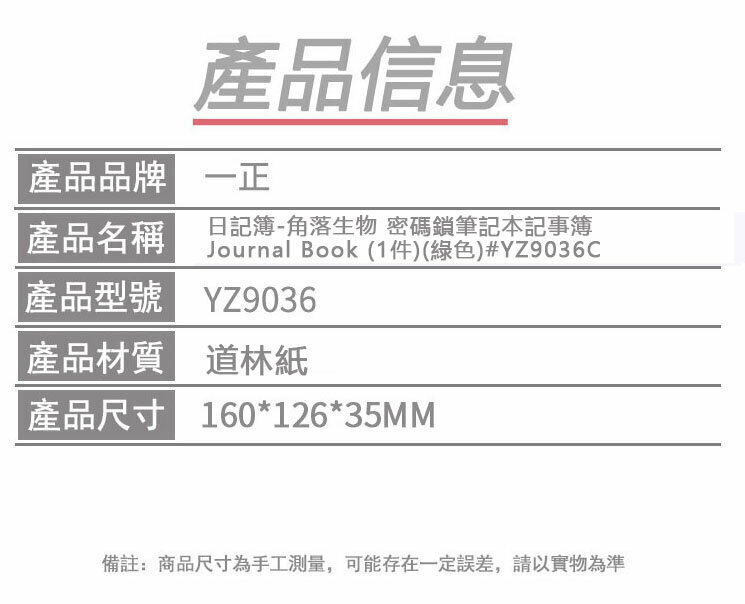 新款日記簿-角落生物 密碼鎖筆記本記事簿Journal Book (1件)(綠色)