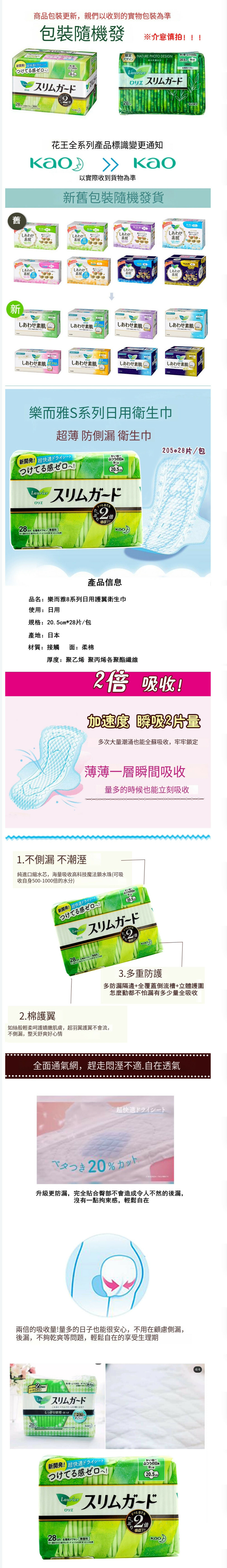 KAO/花王--樂而雅衛生巾女超薄瞬吸護翼巾【20.5cm x28片 新舊包裝隨機發貨】x1包