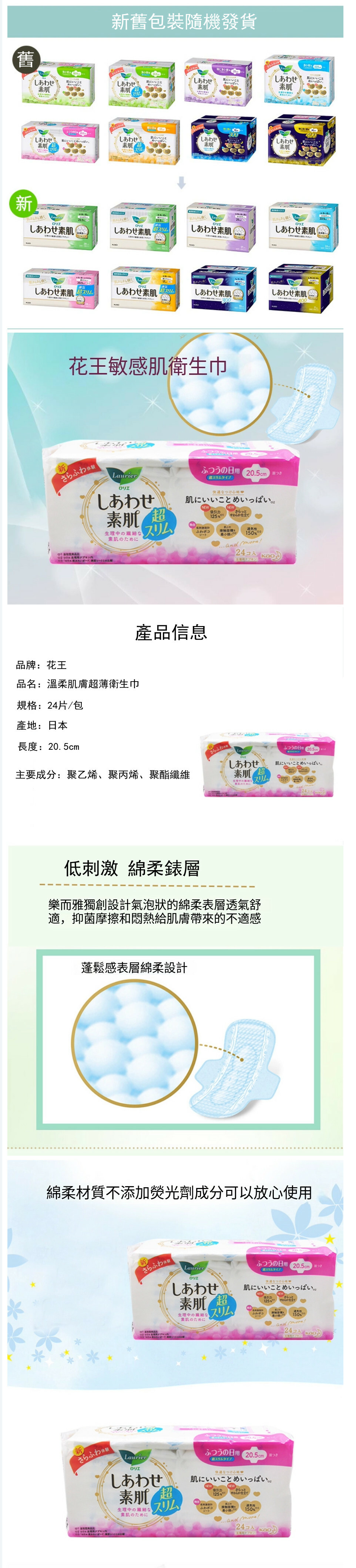 KAO/花王--樂而雅衛生巾日夜用瞬吸超薄零觸感護翼【量多日用20.5cm 24片 新舊包裝隨機發貨】x1包