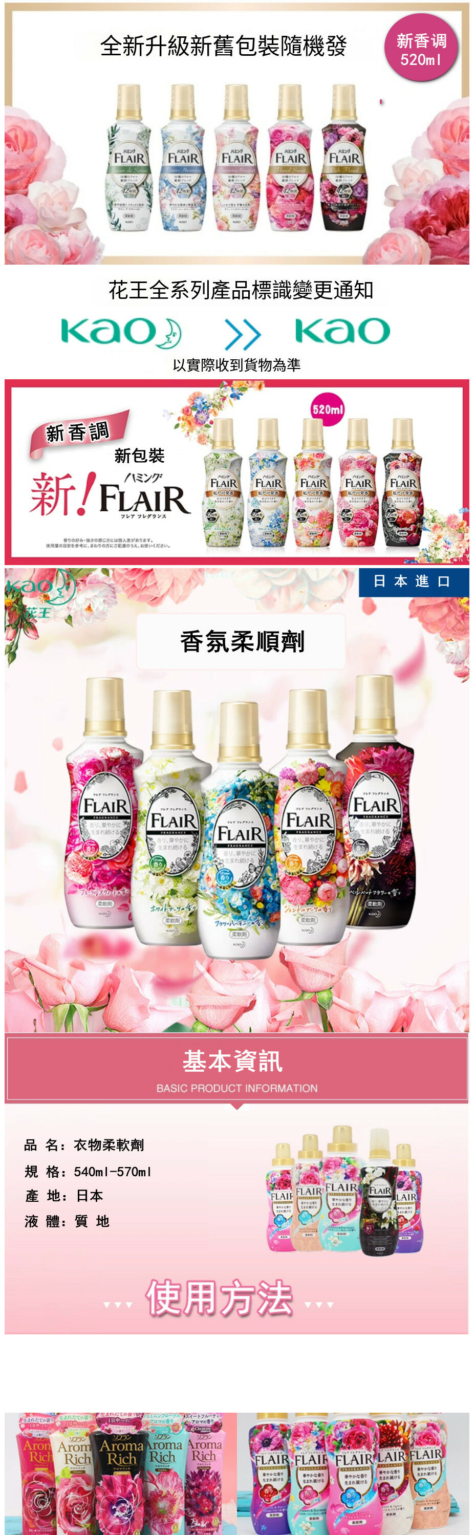 KAO/花王--FLAIR衣物柔順劑蓬鬆柔軟劑【藍色四季果香 新舊包裝隨機發】520mlx1瓶裝