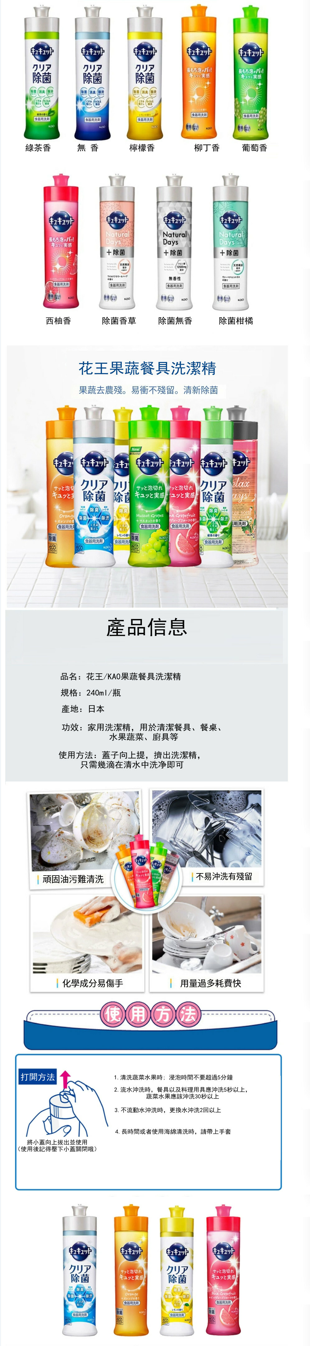 KAO/花王--水果蔬菜餐具洗潔精安全不傷手【無香味】240mlx1瓶裝