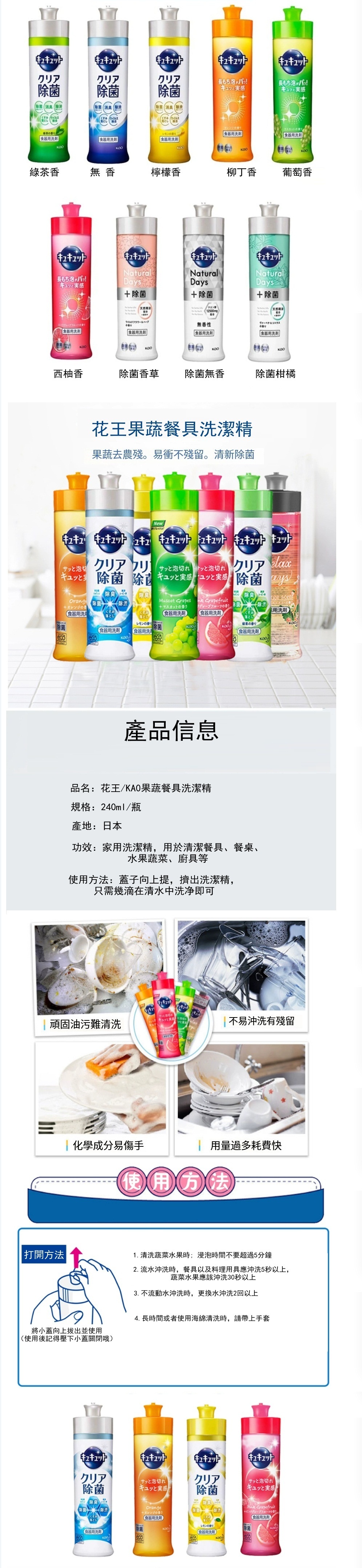 KAO/花王--水果蔬菜餐具洗潔精安全不傷手【葡萄味】240mlx1瓶裝