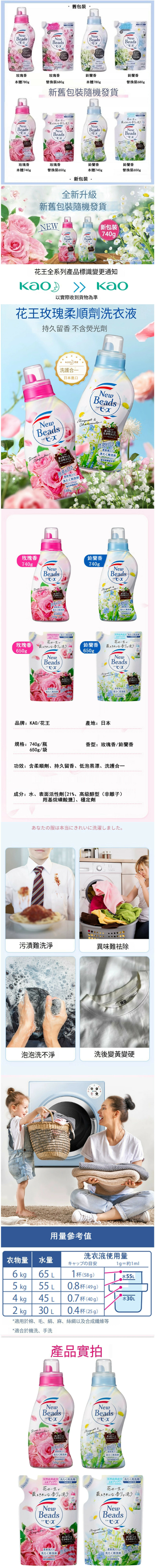KAO/花王--洗衣液玫瑰果香天然柔順劑【鈴蘭香 新舊包裝隨機發貨】740mlx1瓶裝