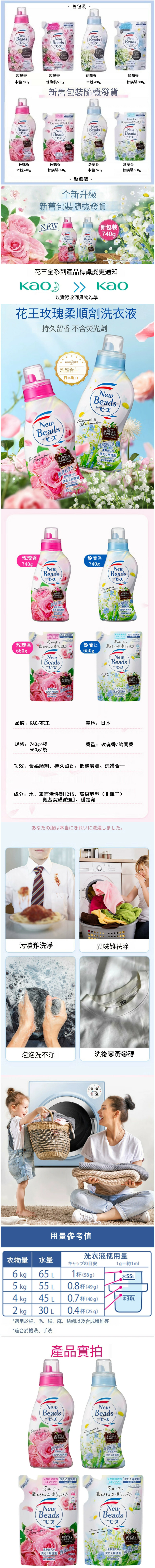 KAO/花王--洗衣液玫瑰果香天然柔順劑【玫瑰香 新舊包裝隨機發貨】740mlx1瓶裝