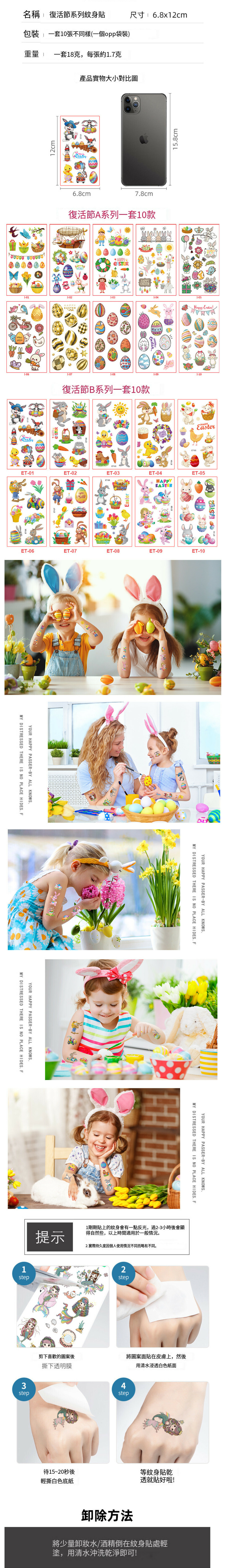 激抵兒童卡通復活節防水節日貼紙(復活節A系列套裝)