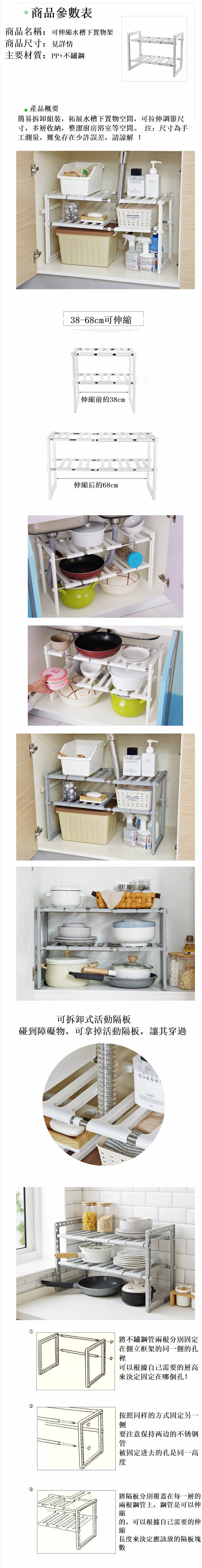 激抵廚房廁所水槽置物架 可伸縮收納架 多用途伸縮置物架 衛生間落地多層儲物架 收納儲存架 塑膠分層收納架【白色 規格38*26*38cm】