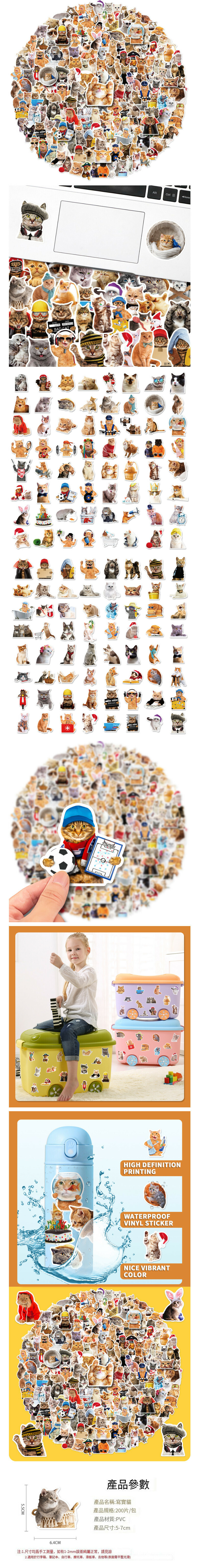 熱賣小貓咪不乾膠防水貼紙(T01040479寫實貓50張)
