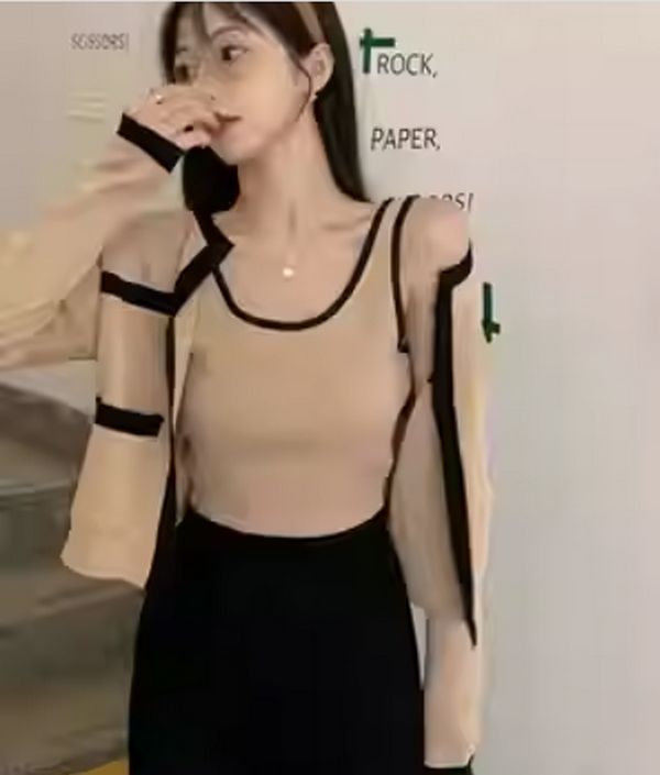 熱賣針織開衫上衣(杏色外套)( 尺碼:均碼)#F134020249
