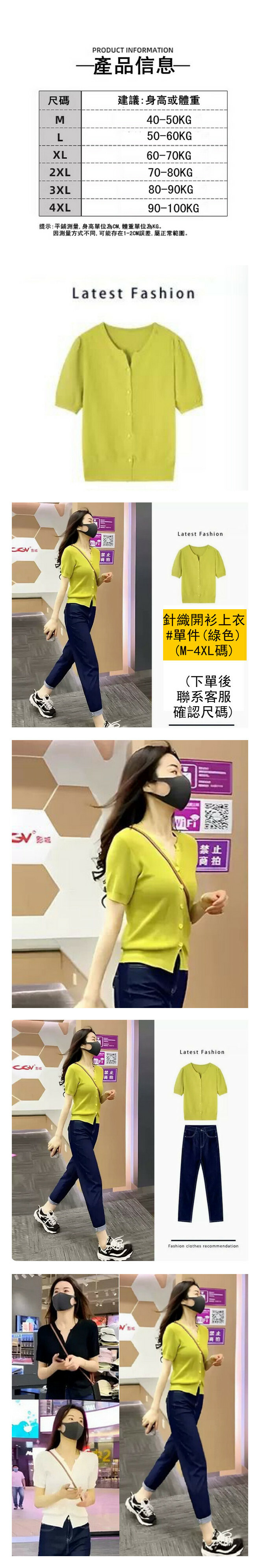 激抵針織開衫上衣#單件(綠色)(M-4XL碼) (下單後聯系客服確認尺碼)