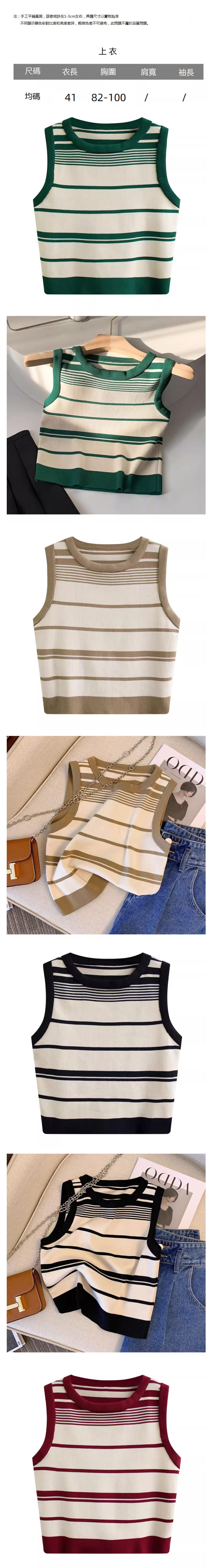 新款針織撞色條紋吊帶背心(綠色)(均碼)