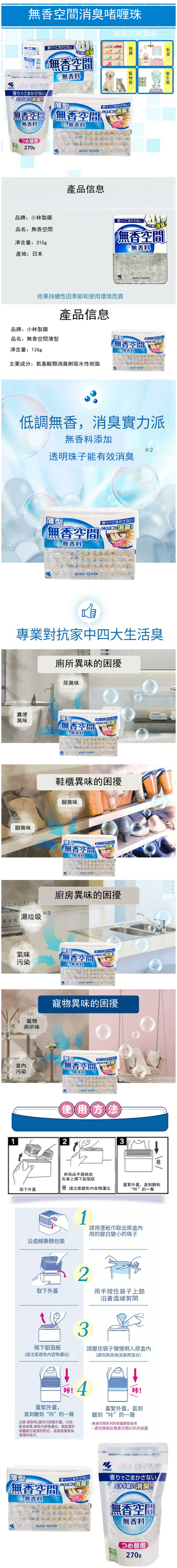 小林製藥--無香空間固體空氣清新劑【寵物消臭除臭】盒裝315g
