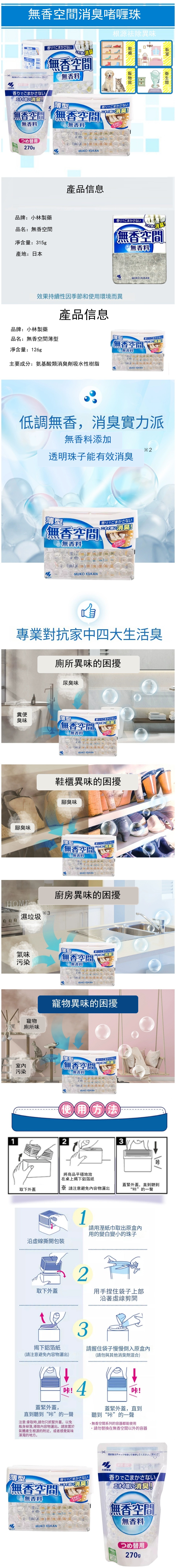 小林製藥--無香空間固體空氣清新劑【寵物消臭除臭】盒裝薄型126g