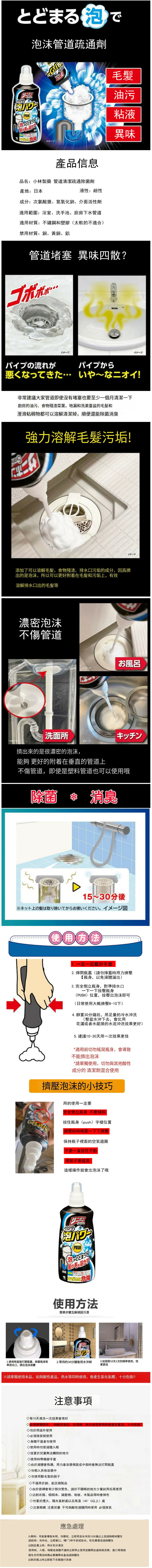 小林製藥--筦道通疏通劑下水道异味廚房,廁所【毛髮分解】400gx1瓶裝