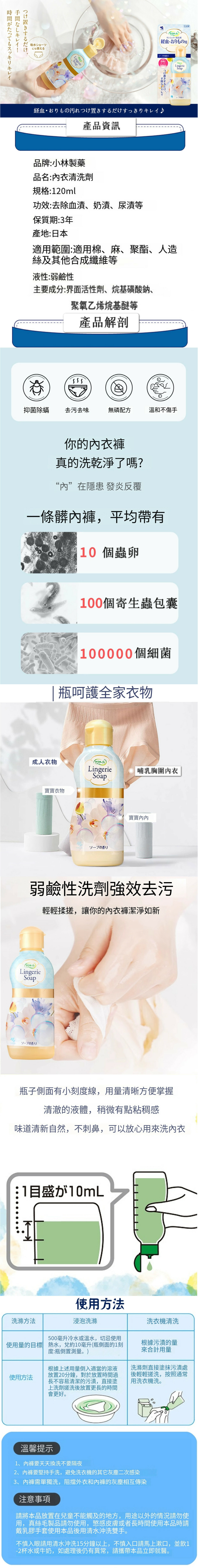 小林製藥--內衣清洗液女性內褲家用清洗劑【去血漬女士除菌專用】120mlx1瓶裝(包裝升級 新舊包裝隨機發貨)