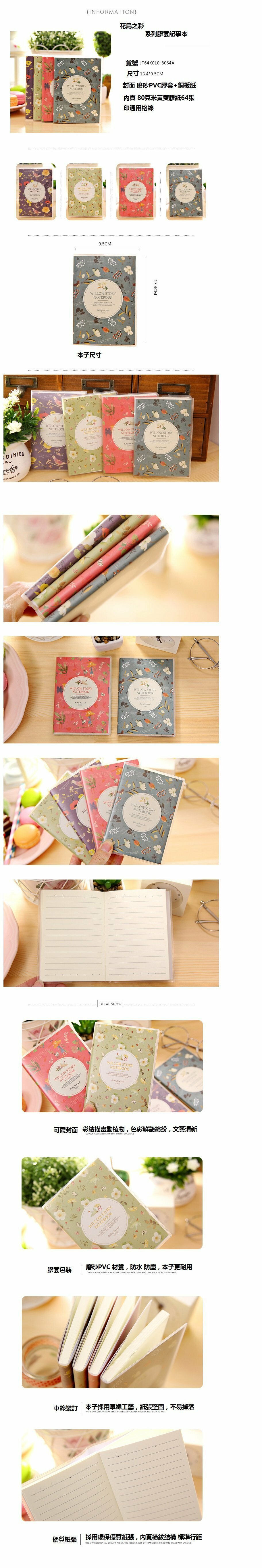 熱賣韓版花鳥之彩系列膠套記事本(混合色 9.5*13.4CM)