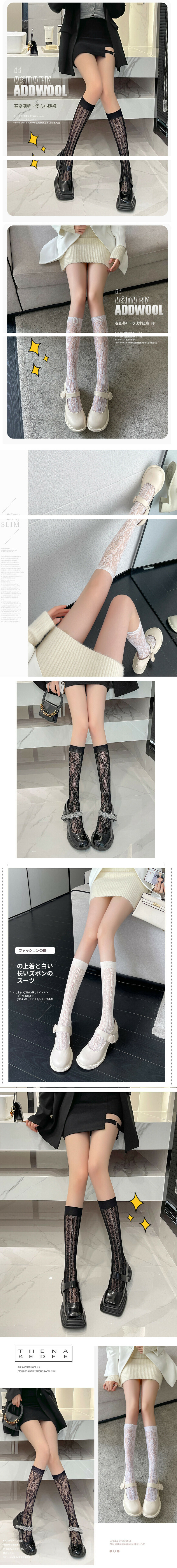 熱賣蕾絲小腿絲襪女長筒襪子(306花藤黑色小腿襪)